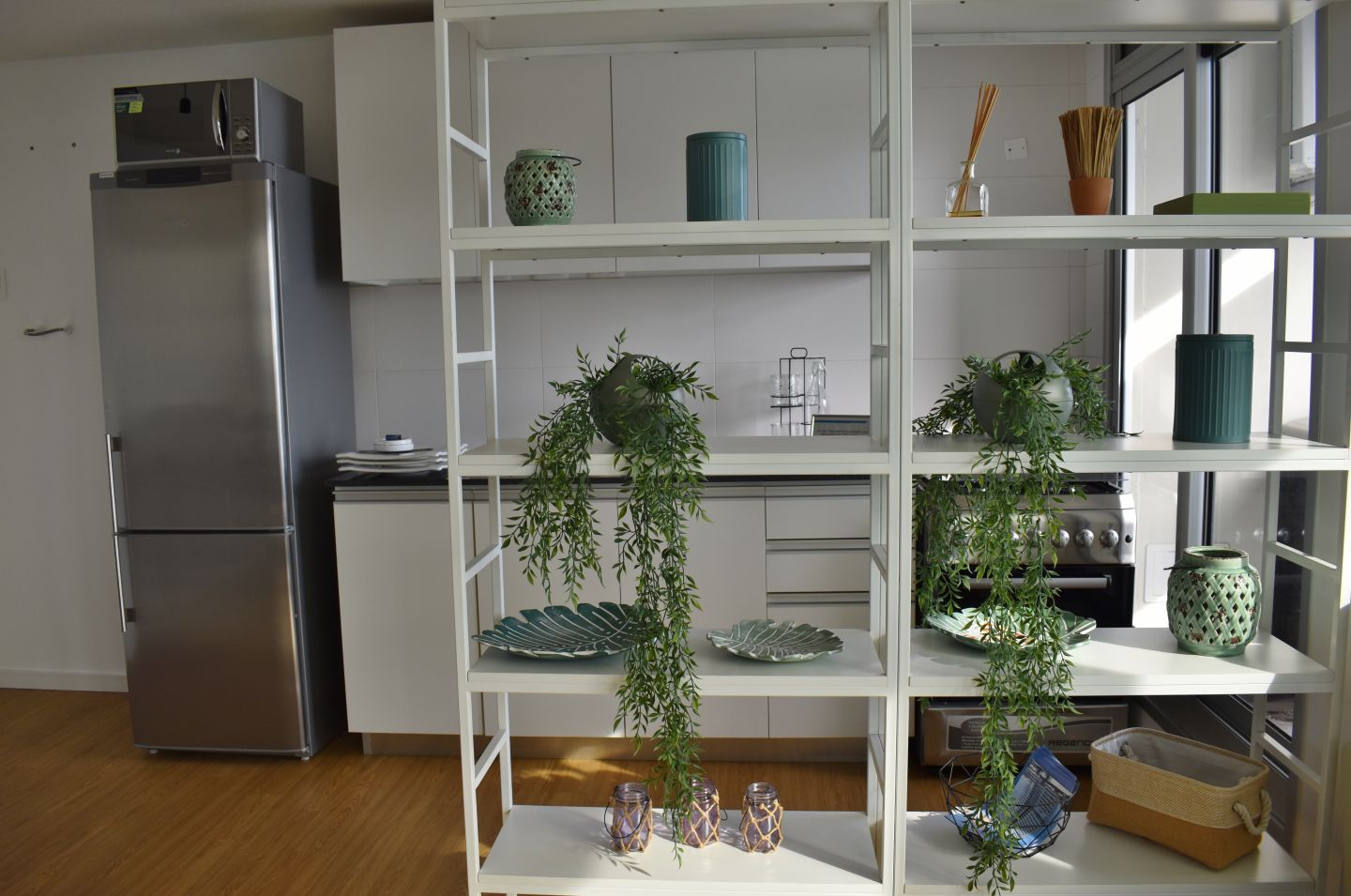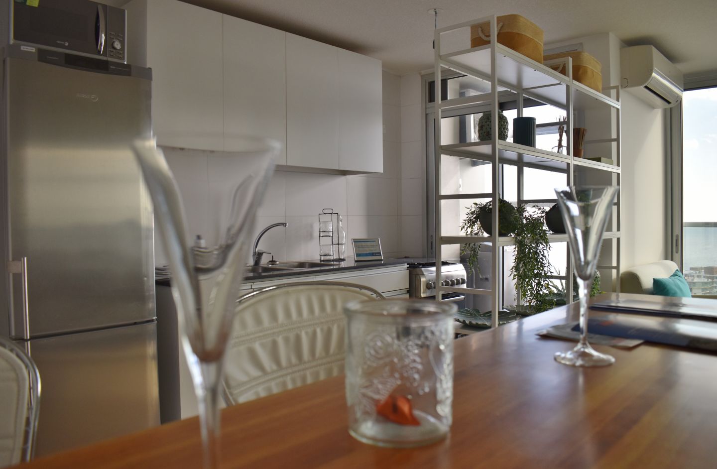 - Cocina integrada con con muebles bajo y sobre mesada.